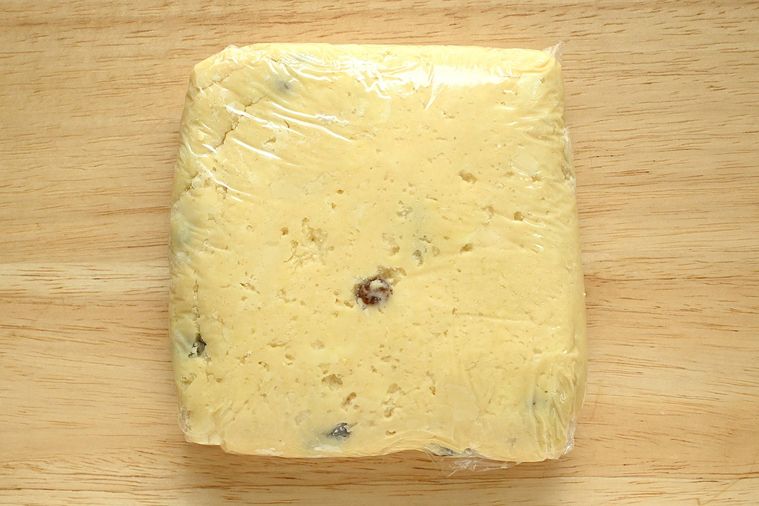 正方形に整えラップに包んで冷蔵庫で1時間ほど冷やします。