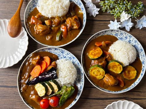 「素揚げしたズッキーニをあとのせしたカレー」がいちばん好きという家族もいて、確かに見た目のよさとコクや旨味がある素揚げ野菜のおいしさも外せない……と思いましたよ。