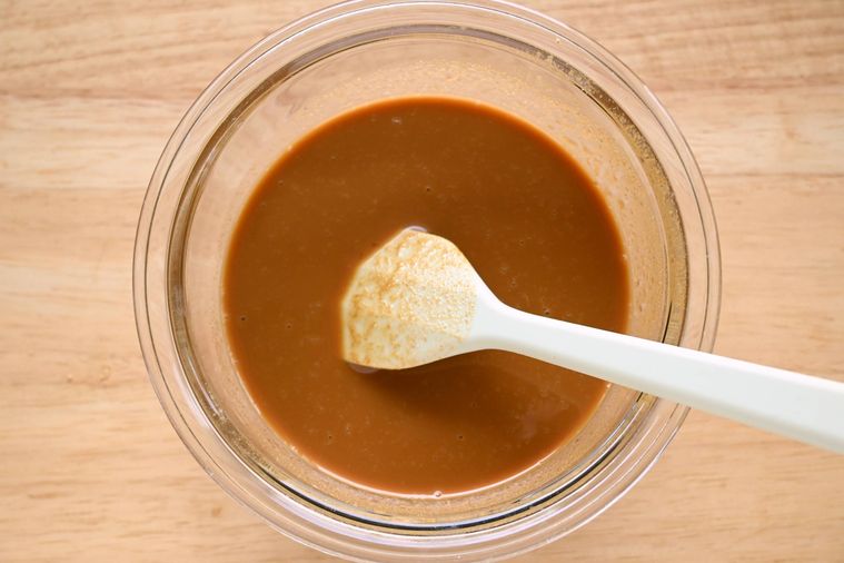 きな粉と黒みつ、ココナッツオイルをボウルに入れ、なめらかになるまでよく混ぜ合わせます。ダマがなくなるまでしっかりと混ぜるのがポイントです。