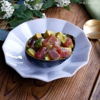 ボウルに【調味料】を入れて混ぜ、アボカド・まぐろを加えて混ぜ合わせます。