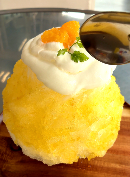 「もちろんどちらでもふわふわには削れるので、お客さんが食べて違いに気づくかというと微妙ですが、かき氷好きの方たちは気にされますね」と語る。機械選びひとつにも、目に見えないこだわりが詰まっている。