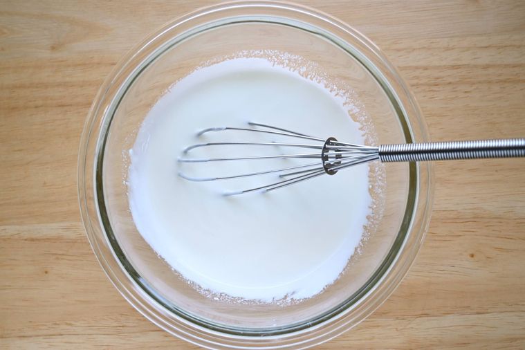 ヨーグルトをホイッパーでダマがなくなるまで混ぜます。