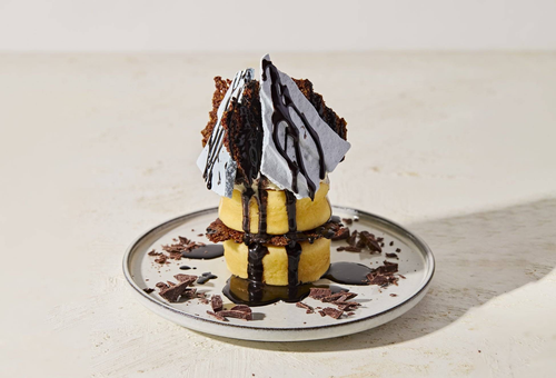 Roasted COFFEE LABORATORYで人気の「ビスケットパンケーキ」に、ミントのかおりとチョコレートの濃厚さを掛け合わせた新作スイーツ。