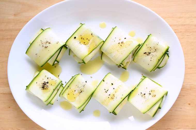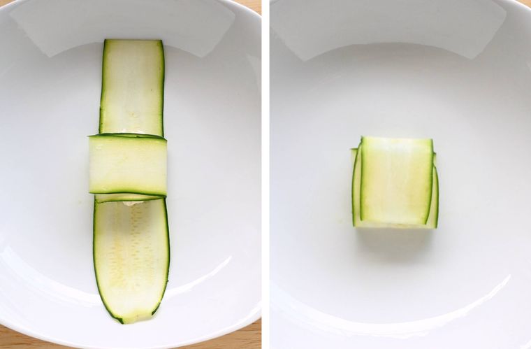 - ズッキーニは、中心に近い幅広の部分を使うときれいに仕上がります。