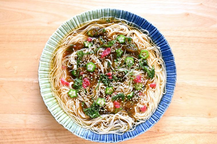 細くしなやかで軽やかな口当たりが特徴のそうめんは、とろみのある具材を入れたつゆでいただくことで食べ応えがアップします。