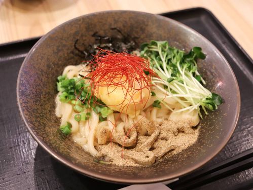 「半熟卵天」は、箸で割ると黄身がとろりとあふれ出す絶妙な揚げ加減。おかずとして食べるのはもちろん、うどんと混ぜて“味変”を楽しむのもおすすめです。黄身が味わいをまろやかに変化させるだけでなく、揚げ油のコクが加わり、「元祖 油うどん」をさらに奥深い味わいにしてくれます。