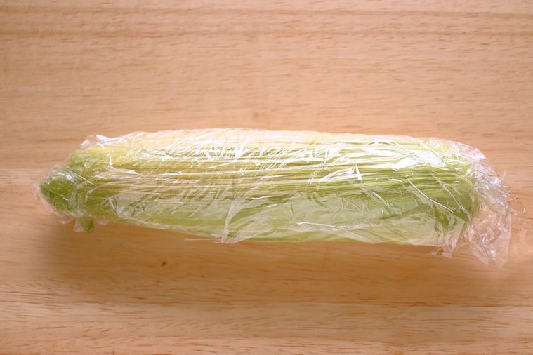 とうもろこしは薄皮一枚を残して皮をむきます。水にサッとくぐらせてラップに包み、電子レンジ600Wで4分加熱します。