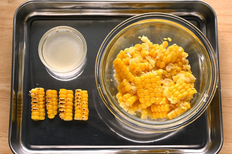 焦げ目を付けたとうもろこしをトッピングすれば完成です。