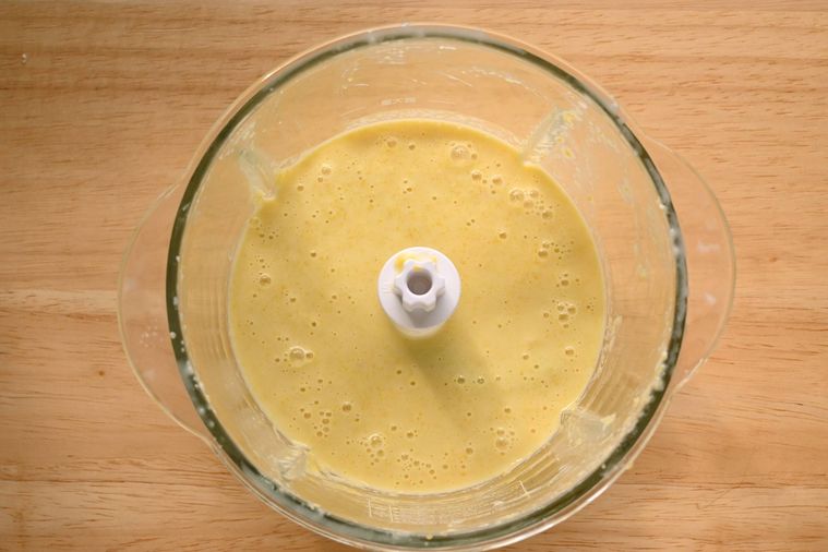 ミキサーやフードプロセッサーに牛乳ととうもろこしを入れてなめらかになるまで攪拌します。
