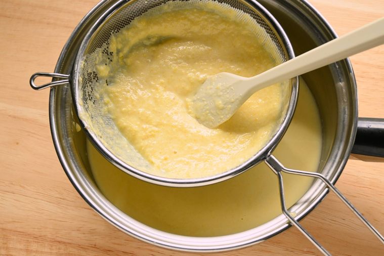 とうもろこしは甘み・重量など、個体差があるため、塩や砂糖などで適宜好みの味に。あとから生クリームを加えることを考慮しつつ、この工程で味見をするのがおすすめです。