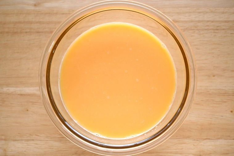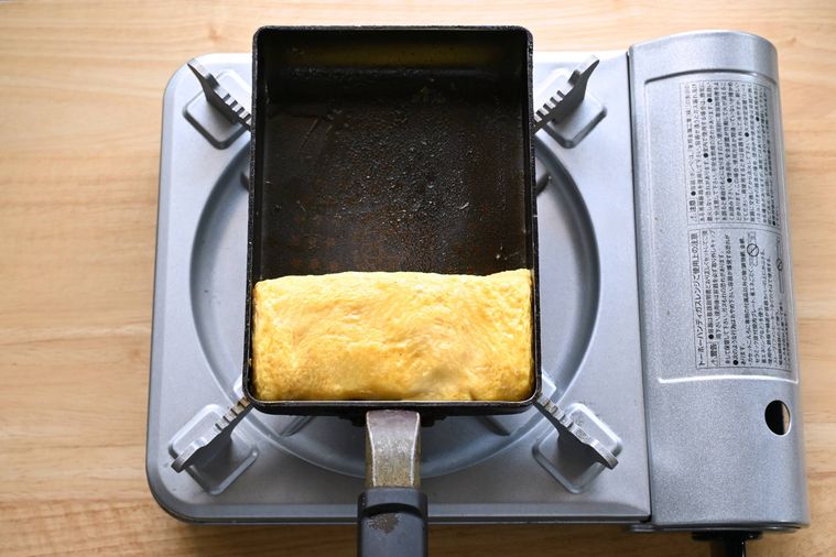 - 片栗粉は底に沈みやすいため、卵液を卵焼き器に流し入れるときは液が均一になるよう、その都度よく混ぜ合わせてください。