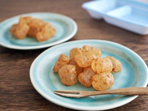 軽く水を切ったらポリ袋に入れ、付属のきな粉を加えてシャカシャカ振れば完成です!