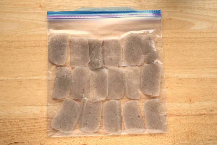 フリーザーバッグに重ならないように並べ入れて冷凍します。