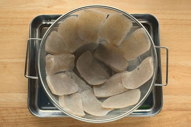 2.解凍したこんにゃくの水気を切る