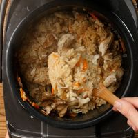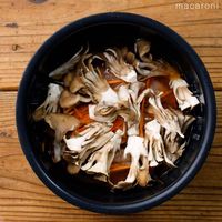 ささみ、にんじん、まいたけをのせ、炊き込みご飯モードで炊飯します。