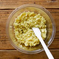 熱いうちにマッシャーなどで潰し、【調味料】を加えて混ぜ合わせます。
