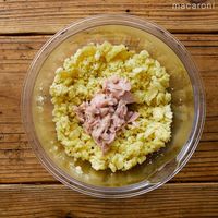 ツナ缶を加えて全体をさっくり混ぜ合わせます。