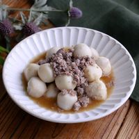里芋・水を入れて、ひと煮立ちしたらアクを取り除きます。