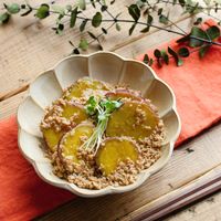 鍋に鶏ひき肉と酒を入れて混ぜ合わせてから弱火にかけ、そぼろ状になるまで炒めます。