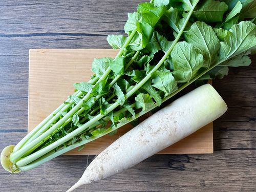 大根の葉っぱは生のまま使うと苦味を感じます。その理由は、大根の葉っぱには、ほうれん草ほどではありませんが、シュウ酸というアク成分が含まれているためです。シュウ酸は水溶性なので、ゆでて水にさらすことで減らすことが可能ですよ。