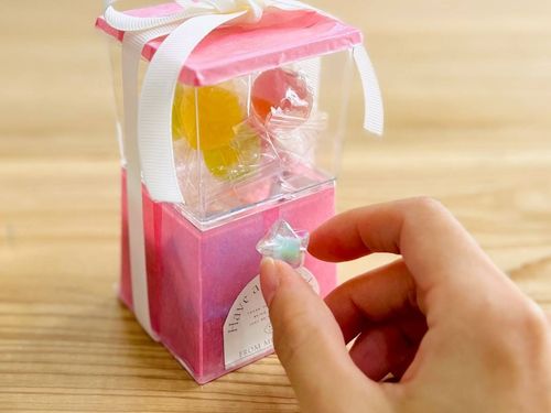 そのまま飾っておいてもおしゃれ。お菓子ではなく、マスコットやアクセサリーなどを入れてディスプレイしてもよいでしょう。