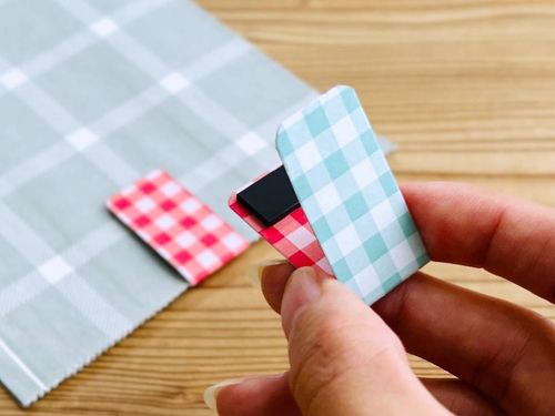 貼ったマグネットタックピースの上に、もうひとつマグネットタックピースをのせます。