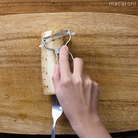長芋にフォークをさしてピーラーで皮をむきます。