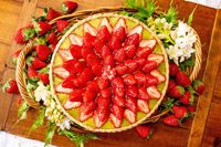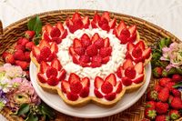 甘酸っぱい紅玉リンゴとイチゴを白ワインで煮て果汁を抽出。チョコレート風味のカスタードを組みあわせ、口どけのよいクリームでまとめたタルトです。紅玉のフレッシュな酸味とチョコの香りが重なりあい、少し大人の雰囲気を感じさせます。