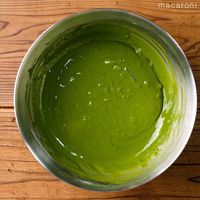 米粉、抹茶、ベーキングパウダーをふるい入れ、粉気がなくなるまで混ぜます。