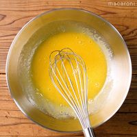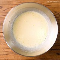 ボウルに卵、グラニュー糖を入れ、混ぜます。