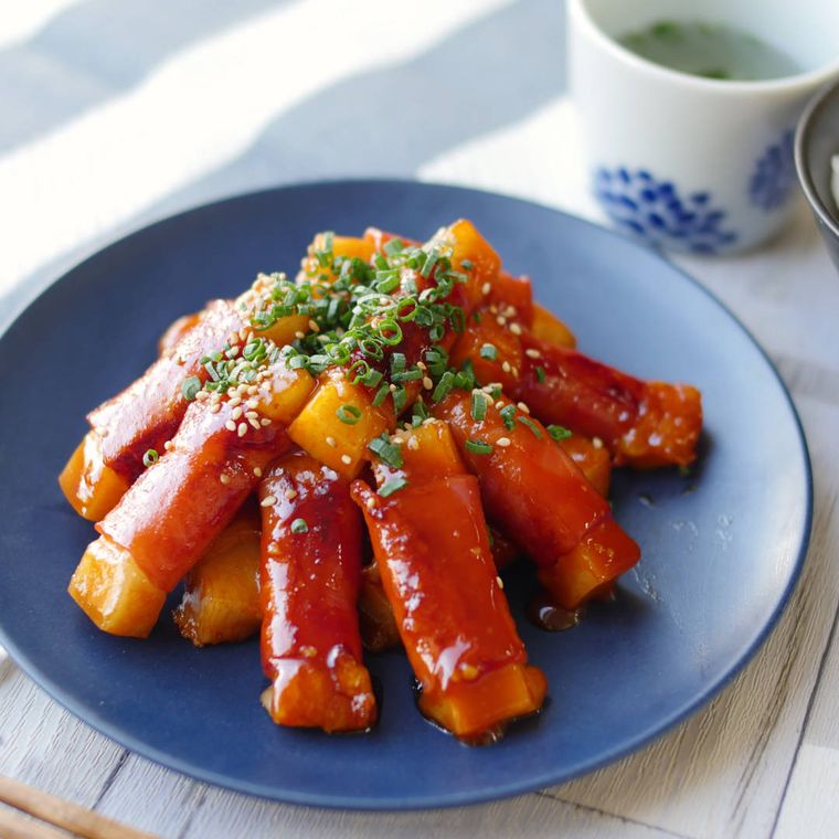 切り餅をフライパンで焼いて、みたらし風の甘辛ダレを絡めるひと品。フライパンひとつで完結する手軽なアレンジレシピです。こんがり焼けた餅の香ばしさと、タレの甘じょっぱさがやみつきに。