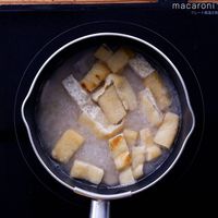 鍋にサラダ油を入れて熱し、②、油揚げを入れて焼き色がつくまで炒めます。