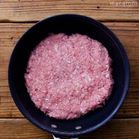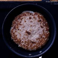 フライパンに【肉だね】の材料を入れて粘り気が出るまで混ぜ合わせ、平らに広げて敷き詰めます。