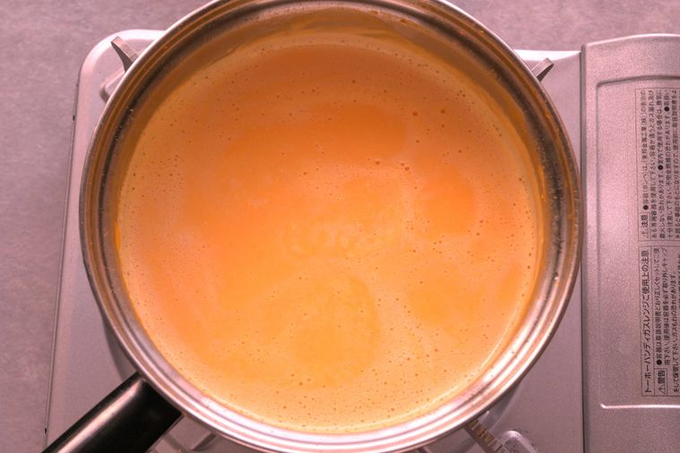 沸騰させると生クリームが分離して風味を損なうことがあるため、弱火で様子を見ましょう。
