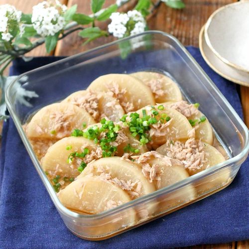 ほどよい酸味と塩気が絶妙に絡む、ごはんがすすむひと品です。大根は塩もみで余分な水分を抜くのが味のしみ込みを良くするポイント。ポン酢に砂糖を加えると甘酸っぱさが立ち、アクセントになります。冷蔵庫で保存すれば数日楽しめ、作り置きにも最適です。箸休めやお弁当のあとひと品としても重宝する副菜ですよ。