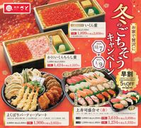 新鮮なネタの鮨と、なめらかな茶わんむし、温かいみそ汁がセットになった、とんでんを代表するメニューです。シャリには、秋田県産あきたこまちや北海道産ななつぼしなど、厳選された米を使用。オリジナルの酢で仕上げたシャリのまろやかさが、新鮮なネタの旨みを引き立てます。