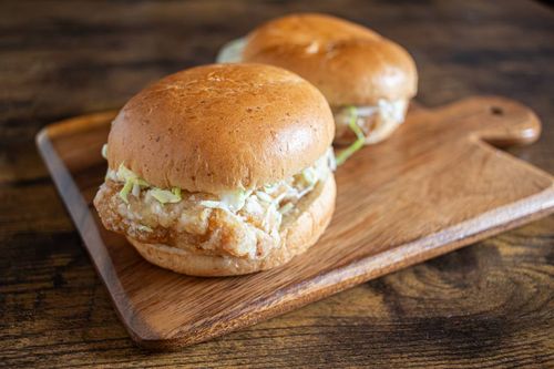 鶏竜田にキャベツとマヨネーズを重ねてバンズでサンド。分厚く大きな鶏竜田が、ふわっとしたバンズと相まって、食べごたえのある一体感を生み出しています。日本人好みの味をとことん追求した和風バーガーは、おかわりしたくなるおいしさです。