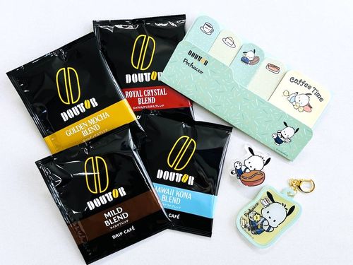 ラインアップは全部で9種類。最大32%オフになるおトクな内容で、すべてのセットにドトール×ポチャッコのオリジナルグッズがひとつ付いてきます(数量限定、なくなり次第終了)。