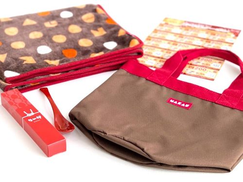 | 内容 | ・トートバッグ ・ブランケット ・なか卯の赤さじ ・お年玉クーポン3,000円分 (200円×15枚) |