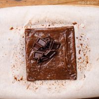 中心にチョコを置いて三角形になるように折り、クッキングシートを敷いた天板に並べます。この作業をもう一度繰り返します。