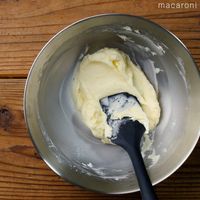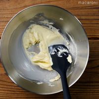 ボウルにバターを入れ、なめらかになるまでゴムベラで練ります。