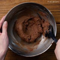 薄力粉、ココアパウダーをふるい入れ、切るように混ぜます。