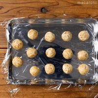 ひとつ分(10gほど)を手に取り丸めたら、冷蔵庫で10分ほど冷やします。