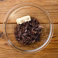 耐熱ボウルにチョコレートとバターを入れ、レンジ600Wで50秒加熱します。