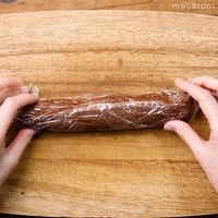 まとまってきたらラップの上にだして、直径3cmほどの棒状に形を整えます。