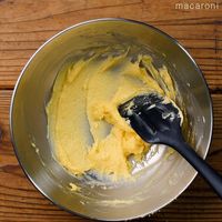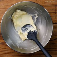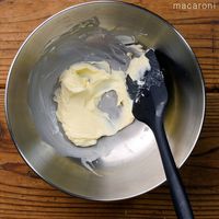 ボウルにバターを入れ、なめらかになるまでゴムベラで混ぜます。