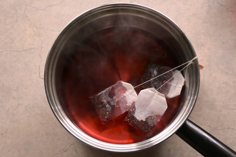 鍋に水を入れて火にかけ、沸騰したら火からおろします。ティーバッグを入れ、5分ほど蒸らして浸出させます。