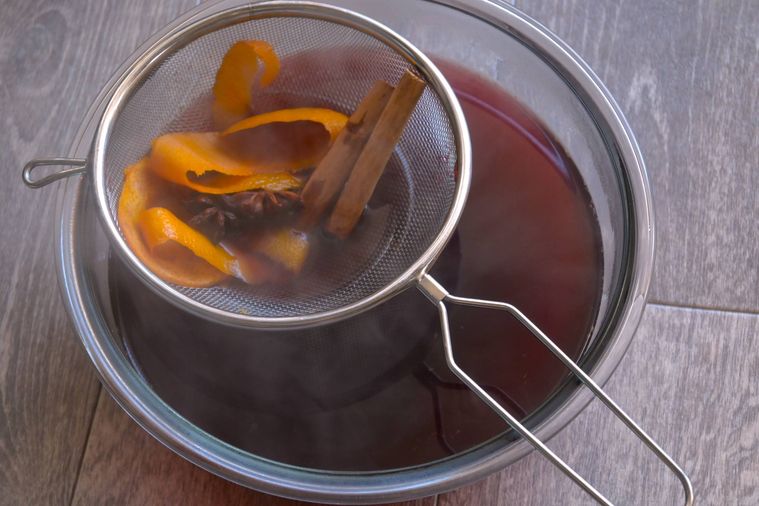 ストレーナーで濾して、皮やスパイスを取り除きます。