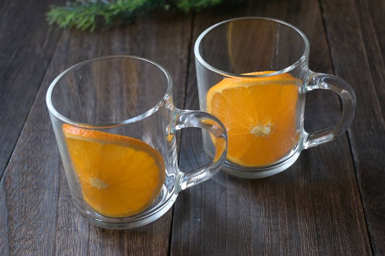 キンダープンシュをカップに注ぎ、シナモンスティックを挿してオレンジスライスを浮かべれば完成です。