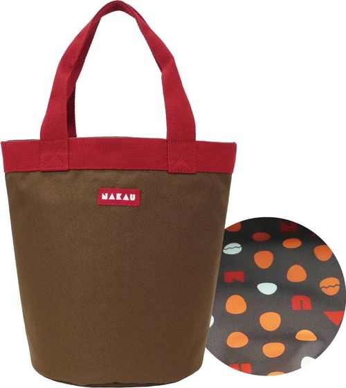 赤いワッペンがアクセントになった落ち着いた風合いのトートバッグは、大容量サイズなので荷物が多い日のお出かけにもピッタリ。裏地には、なか卯の “こだわり卵” をモチーフにしたたまごデザインが施されています。
